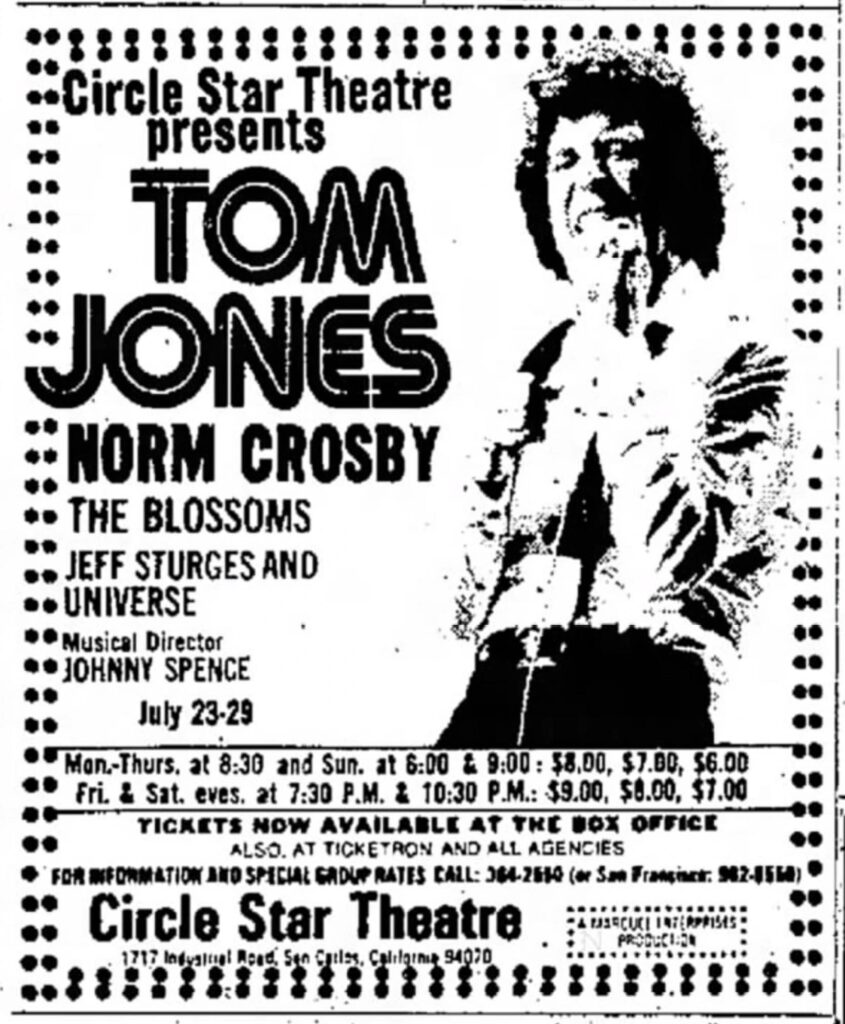The Circle Star Theater was a one-of-a-kind venue. It opened in 1964 in the sleepy peninsula town of San Carlos. Surprisingly, the venue was backed by big Hollywood types, including Sammy Davis Jr., Debbie Reynolds and others. It was located 25 miles south of San Francisco. The name refers to the stage which was a circle and rotated.